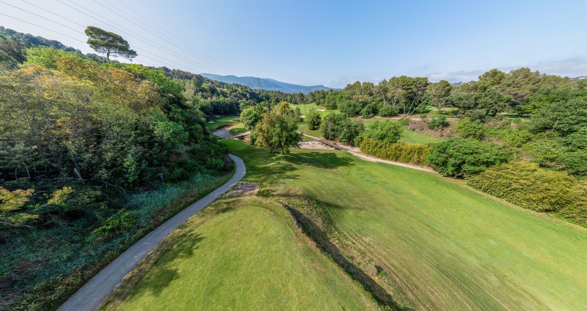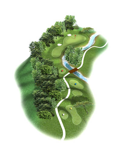 Attention à l'illusion d'optique, vous pouvez taper un club de moins sur ce par 3 en descente, le green est en pente vers l'obstacle d'eau.
