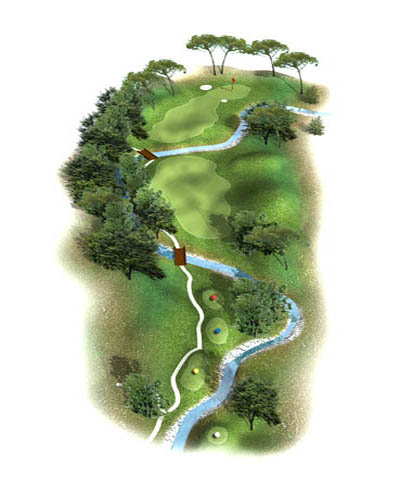 Un trou où le 5 n'est pas un mauvais score, appuyez le drive sur la droite avant de jouer à gauche du green sur le 2ème coup.